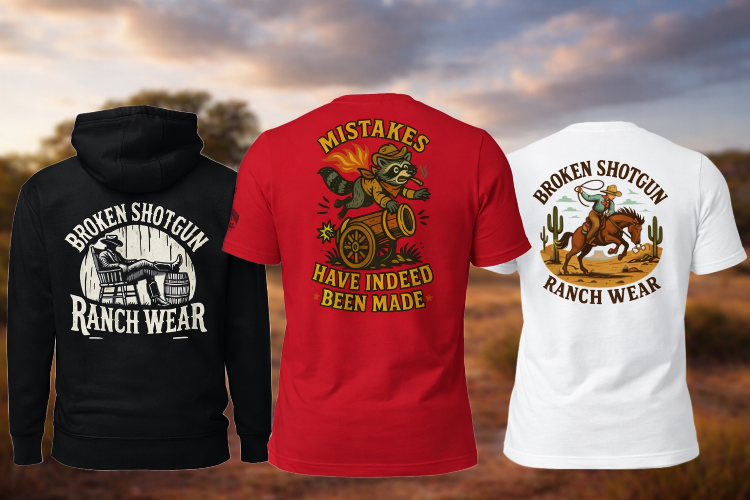 Broken Shotgun Ranch Wear is built for those who live the Western way of life—whether that means putting in hard work or taking it slow at the end of the day. Our goal is simple: make comfortable, well-made clothing that feels at home on the ranch, in town, or anywhere in between. This is gear for those who wear the West and live the legacy.